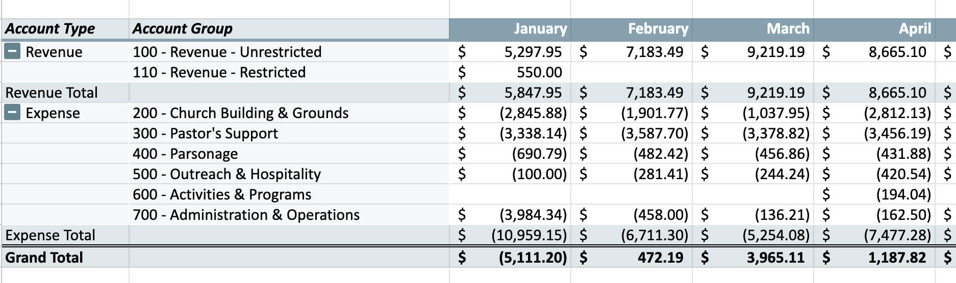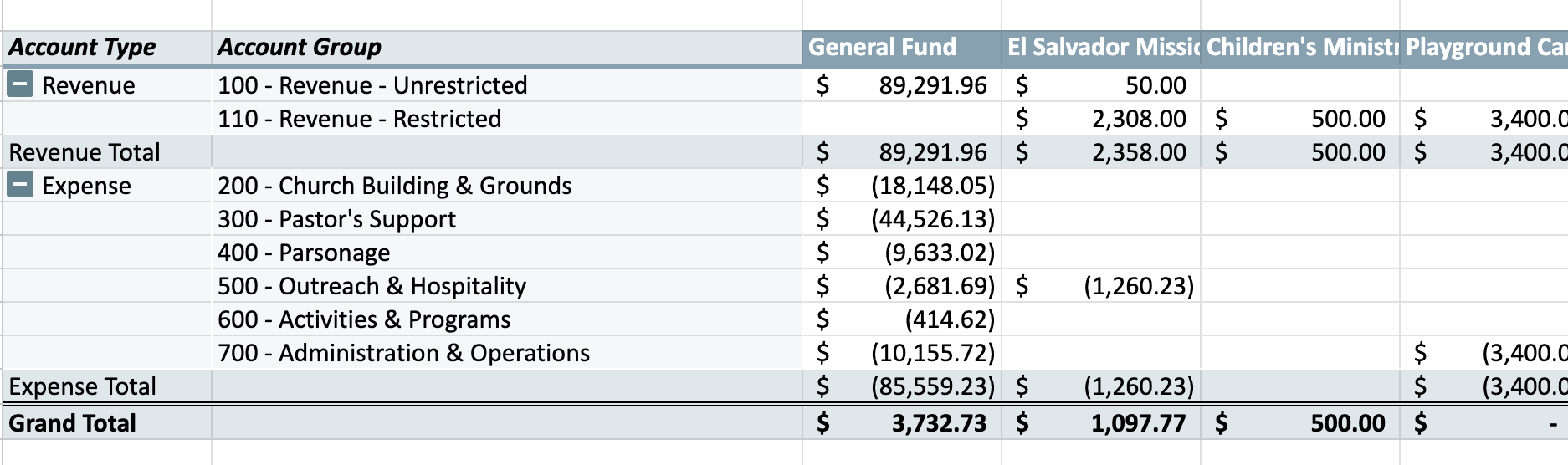 Mere Bookkeeping is a simple to use yet powerful accounting tool—designed for small churches, non-profits, and clubs. Built as a free Google Sheets template, yet it requires no spreadsheet formula knowledge—just basic data entry.